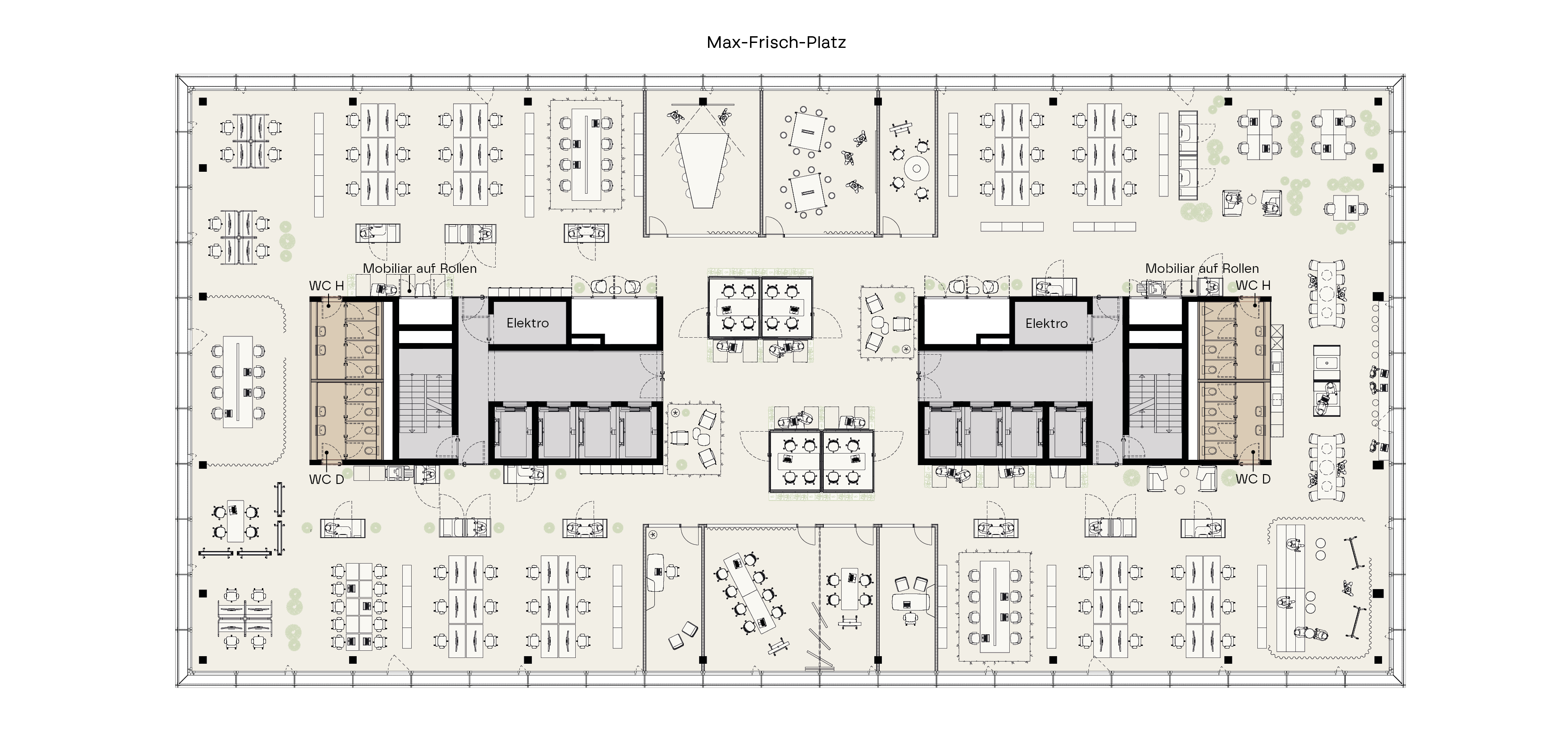 Mit etwa 1’360 m² pro Geschoss bieten die Büros jede Menge Spielraum für individuelle Gestaltung. Das offene Layout sorgt für effiziente Wege und maximale Anpassungsfähigkeit. Der erweiterte Grundausbau mit Doppelboden, Kühlung und Lüftung über Deckensegel, sowie ausgebaute Sanitäranlagen bietet eine hervorragende Ausgangsbasis für Ihren individuellen Ausbau. Die Eigentümerschaft ist offen für flexible Lösungen und unterstützt Sie gerne dabei, den optimalen Ausbaustandard für Ihre Anforderungen zu finden.
